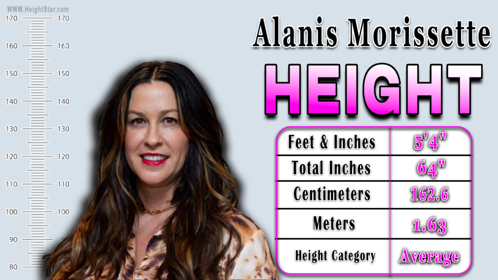 Modern tours and live performances still place Alanis Morissette around 5 ft 4 in (162.6 cm), showing little variation over the years.