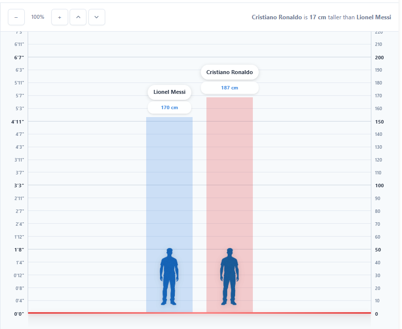 A height comparison gives a clear answer without confusion. It shows the exact difference on a visual chart. You can see how tall each person looks in real scale. The result appears in both CM and feet, so it fits every user. This makes the process quick, simple, and easy to trust.
