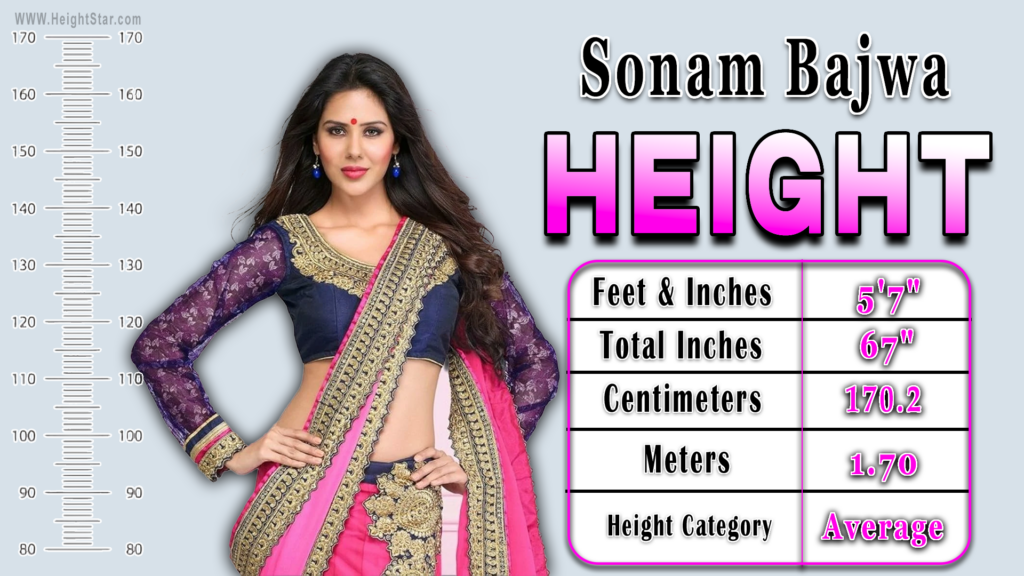 At about 5 ft 7 in (170.2 cm), Sonam Bajwa stands taller than the average height of many female fans. The average female height in India is around 5 ft 3 in. This difference often makes her appear noticeably taller in fan photos.